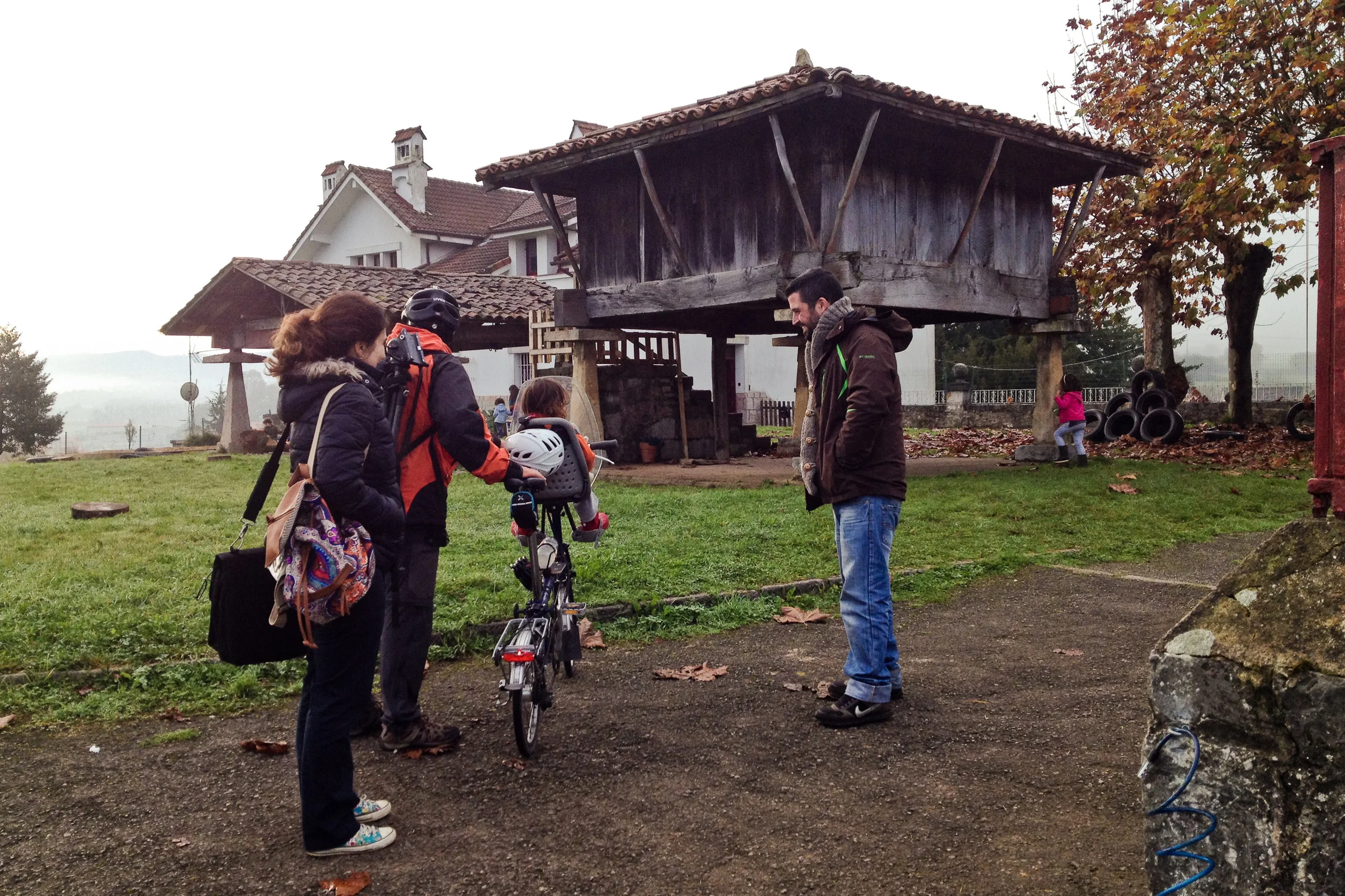Primero fue el cuento. Un cuento lleno de complicidad y cariño escrito por una de las mamás de la escuela, anticipando nuestra visita. Desde Oviedo se llega a La Quinta’l Texu saliendo en dirección al pueblo de Villaperi, y tras recorrer varios kilómetros por una carretera secundaria que en el último tramo está flanqueada por árboles frondosos, colinas ondulantes y caseríos de piedra y teja. Mientras pedaleábamos aquella mañana de noviembre camino al cole, nos venía a la mente el final de ese cuento... "Muy pronto la familia viajera y las familias de la Quinta vamos a encontrarnos, y quién sabe qué puede llegar a pasar".